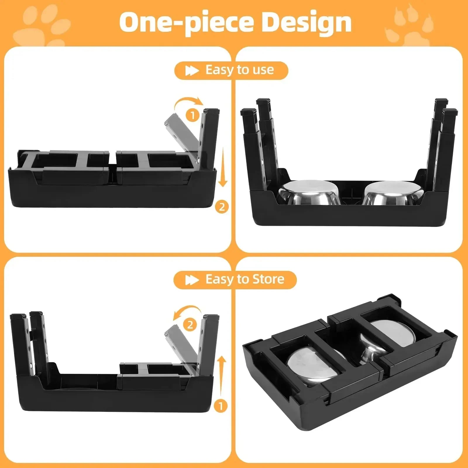 Double Stainless Steel Bowls: The feeder includes two high-quality stainless steel bowls, one for food and one for water. Stainless steel is durable, rust-resistant, and easy to clean, making it the ideal material for pet bowls. The bowls are removable, allowing for easy refilling and cleaning.