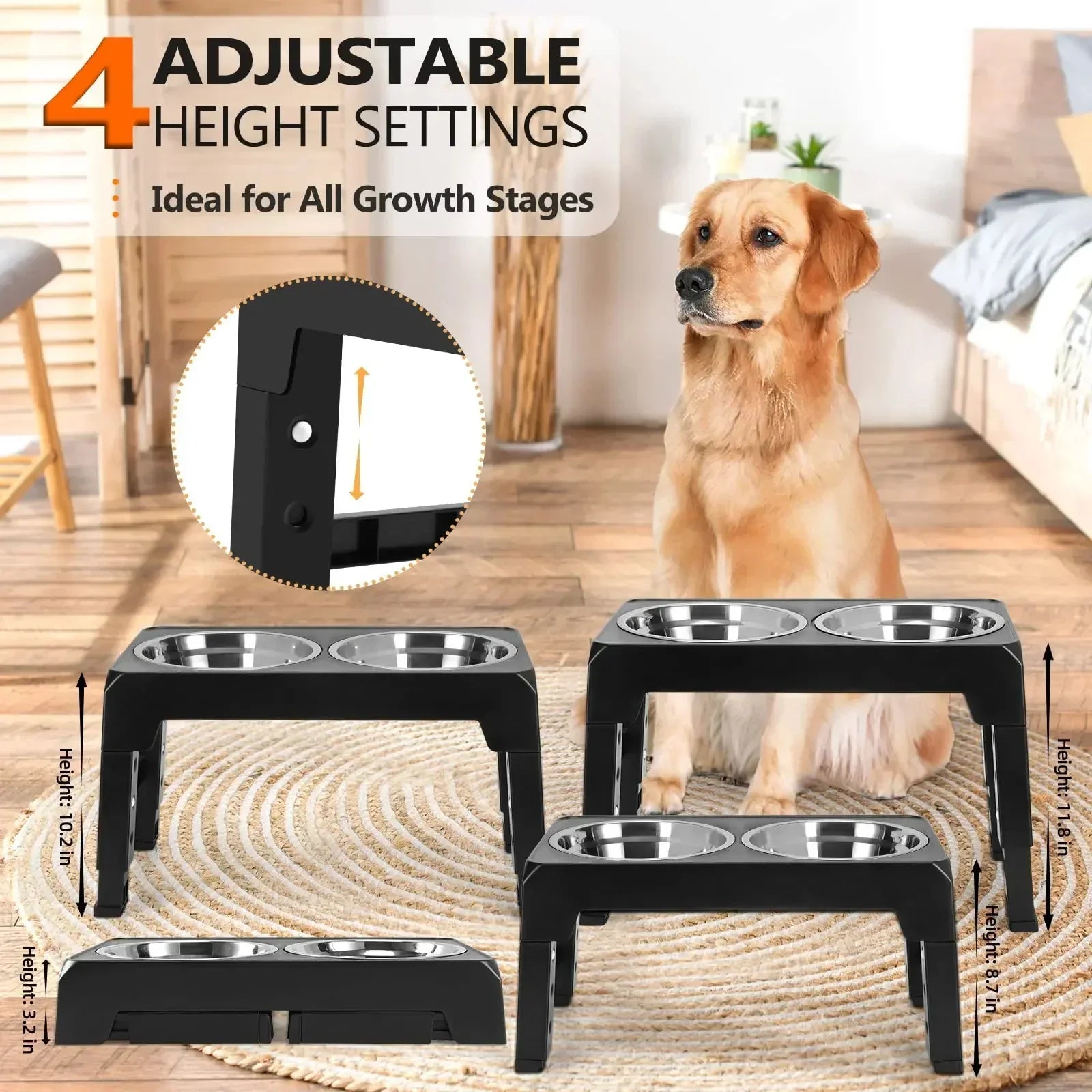 Adjustable Height: The elevated stand features adjustable legs, allowing you to customize the height to suit your dog's size and feeding preferences. Whether your dog is a small breed or a large breed, you can easily adjust the height of the feeder to ensure optimal comfort during meal times.